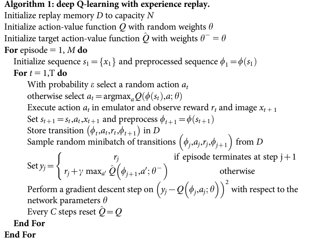 Figure 1: DQN with Experience Replay Algorithm from the 2015 Nature paper. Includes the target network.