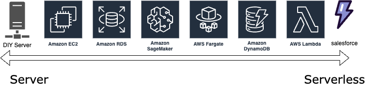 The server to serverless spectrum. This is not a complete list it’s just for illustrative purposes
