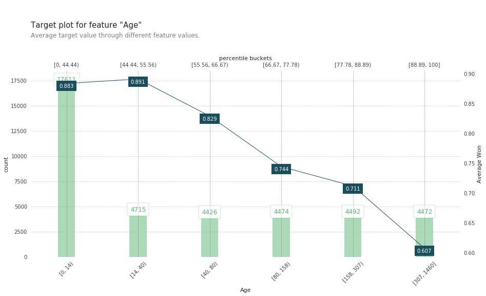 I like to get an idea of what I’m dealing with before starting to dive into any analysis too far, and so the first thing I wanted to check was how the age of an opportunity affected the the win rate.