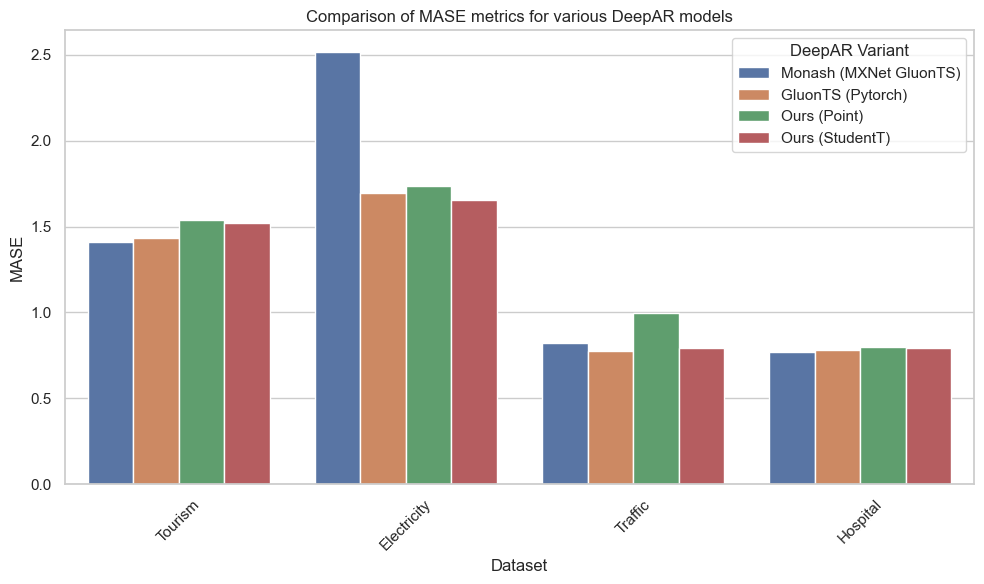 Figure 1. Comparison of MASE metrics for various DeepAR models